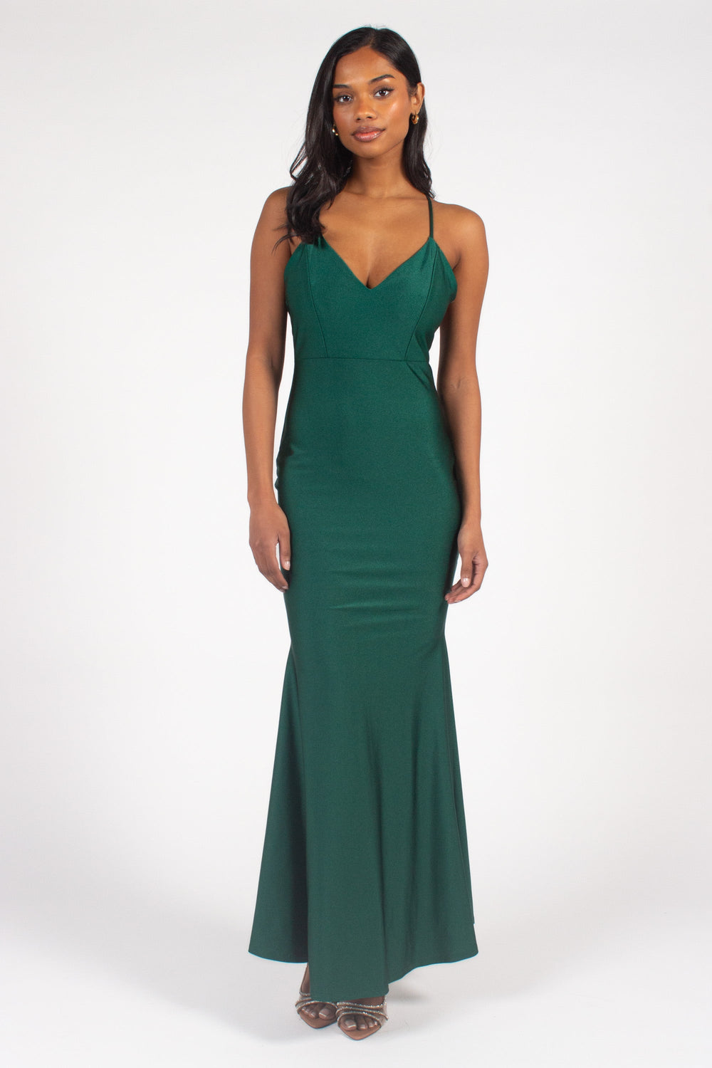 Make any event a stunning one with the Shimmers Mermaid Maxi Dress! The sleek stretch-woven satin shapes this dress with criss-cross spaghetti straps, a v-neckline and princess seams along the front bust. Complete with a magical maxi mermaid silhouette and breath-taking centre back slit hem.